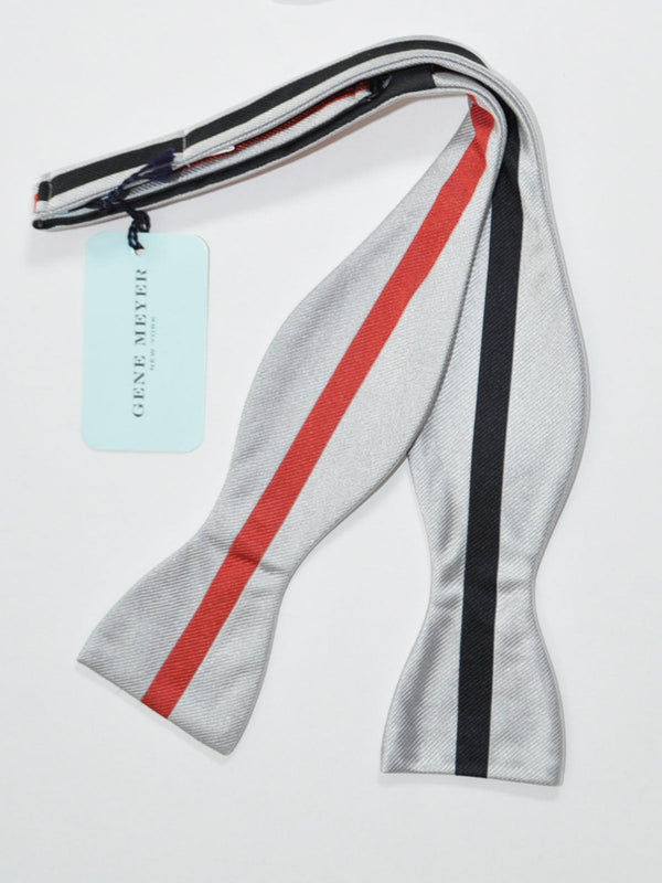 Gene Meyer Silk Bow Tie Black Gray Red Stripe - Self Tie SALE