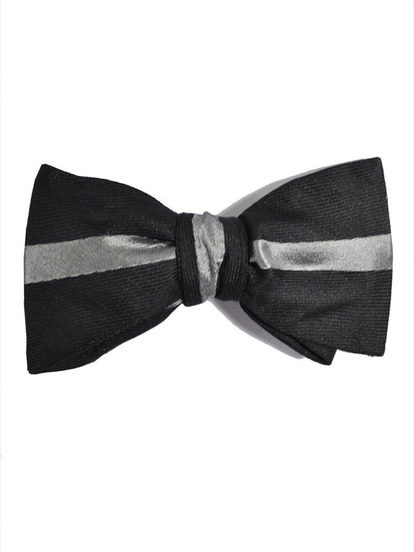 Gene Meyer Silk Bow Tie Black Gray Stripe SALE