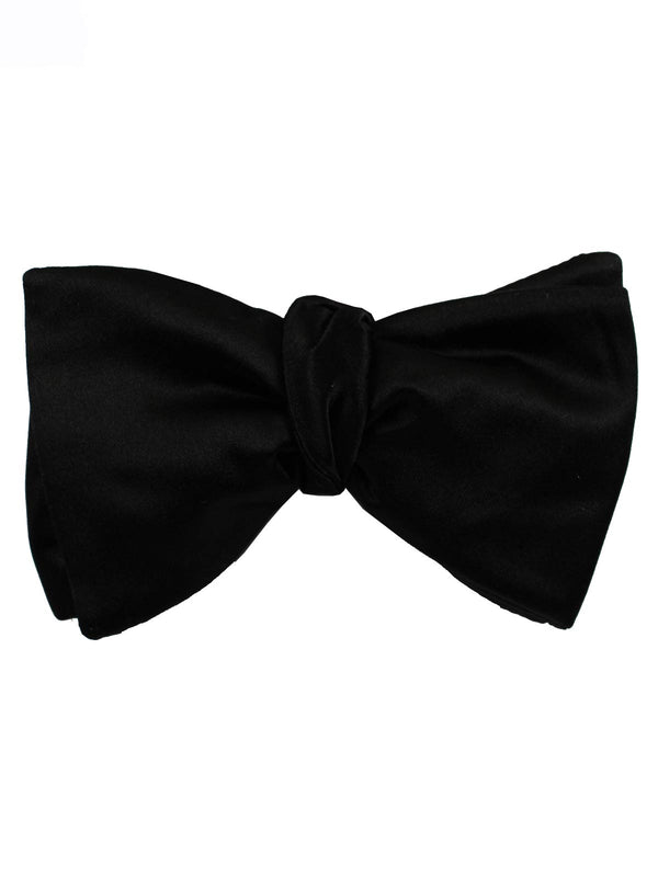 Fancy Le Noeud Papillon silk bow tie, solid black, Mogador satin silk, modified butterfly, self tie. Luxury black bow tie, Le Noeud Papillon specializes in top quality bow ties using Italian silks, hand made in Australia. Luxury .