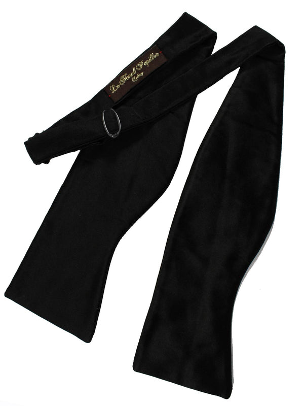Le Noeud Papillon Solid Black Bow Tie - Modified Butterfly Silk Self Tie SALE