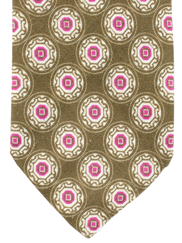 Luigi Borrelli Unlined Tie Olive Pink Medallions Linen FINAL SALE